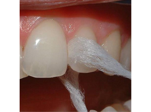 日本人の歯間に合う太さの糸に、絶妙な量のワックスを塗布。歯と歯の間に通しやすく、かつ歯肉縁下で広がります。