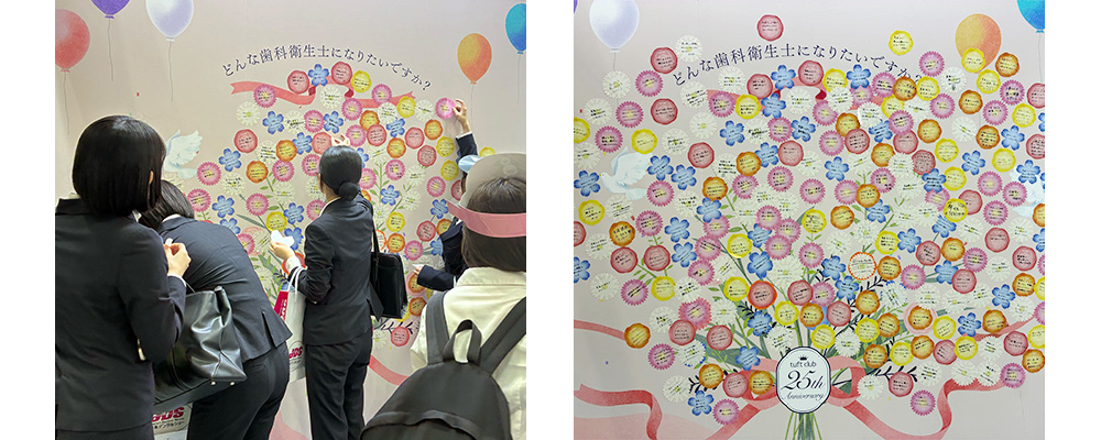 訪れた方に「どんな歯科衛生士になりたいか」を書いていただき、たくさんの想いにあふれた大きな花束をつくりました。