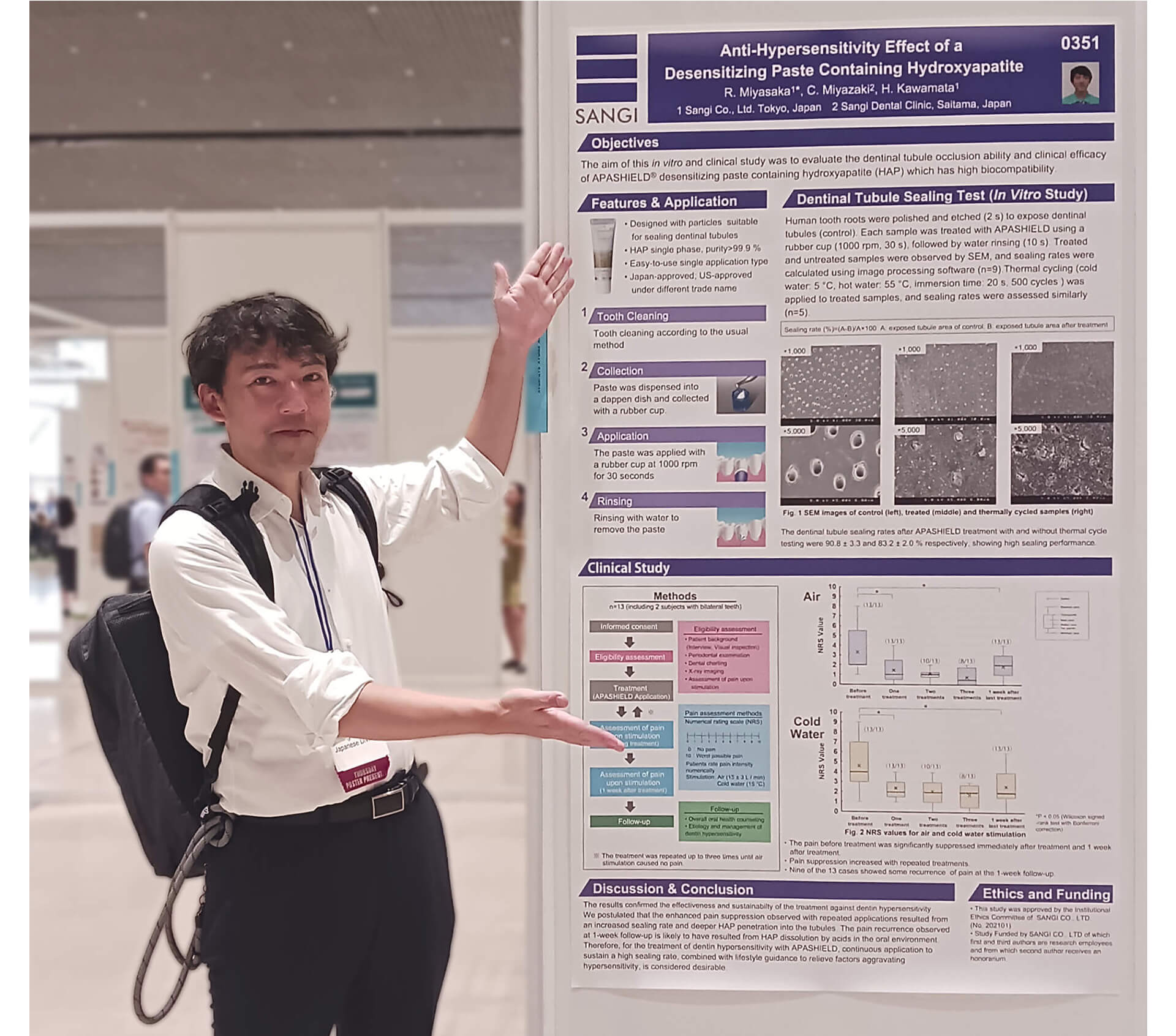 「ハイドロキシアパタイトに、世界からこれほど熱い視線が集まったのは初めてです!」興奮気味に話してくれたのは、株式会社サンギの研究員 宮坂亮介さん。2025年6月、国際歯科研究学会(以下、IADR)の学術大会でポスター発表を行なったところ、非常に大きな反応があったといいます。歯科界の最前線で宮坂さんがどんな体験をし、何を感じたのか。貴重なお話を、3回に分けてお届けします。