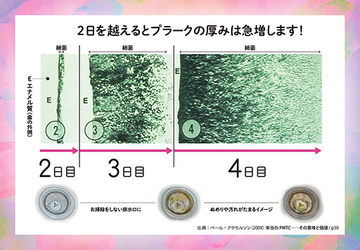 なぜフロスを毎日行なうことが大切なのか、患者さんに視覚的に伝えられるツールです。習慣にしてもらうきっかけとして、ぜひご活用ください。