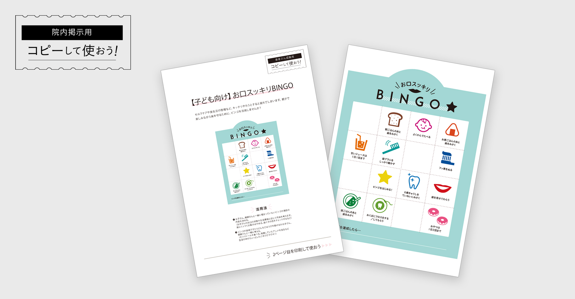 セルフケアや食生活の管理など、キッチリやろうとすると疲れてしまいます。親子で楽しみながら歯を守るために、ビンゴを活用しませんか?